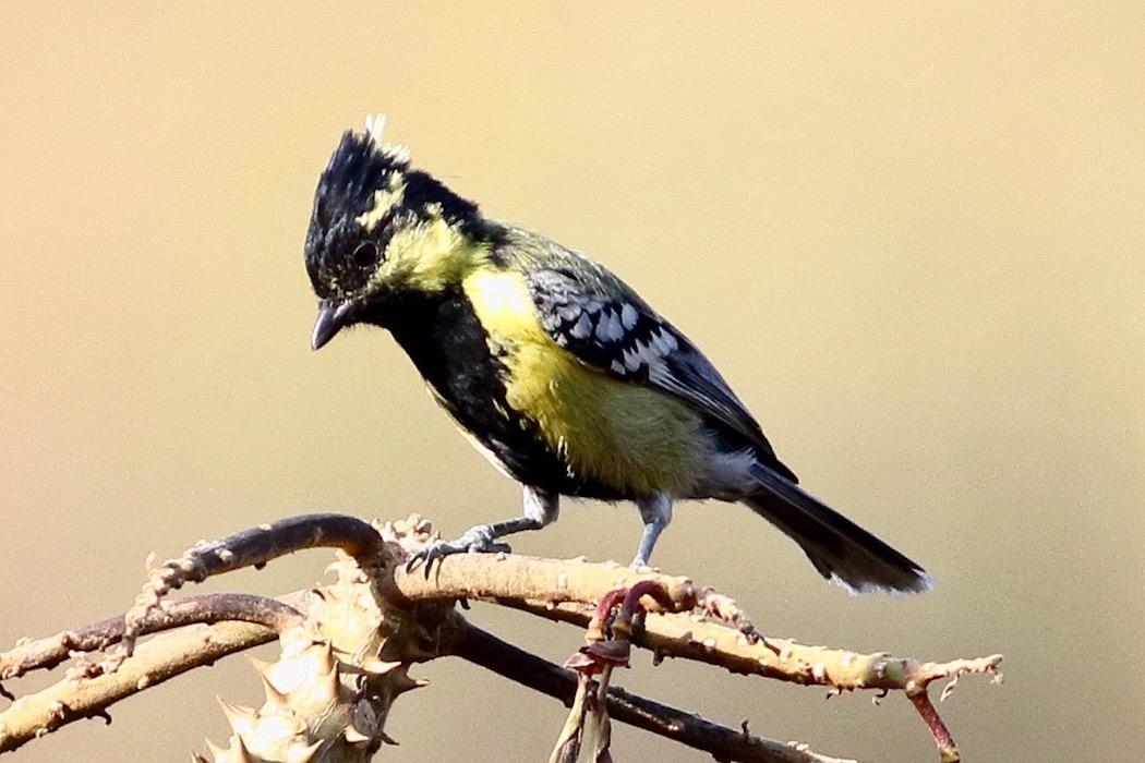 2. Indian yellow Tit: Is a striking black and yellow bird with a prominent crest, a residential bird of Mount Abu.